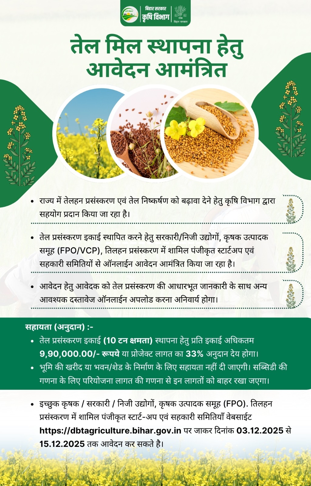 समय सीमा समाप्त हो चुका है |आदेशानुसार,कृषि विभाग !